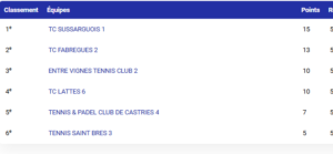 Un joli parcours tout au long du championnat de l’Hérault, même si l’aventure s’arrête ici et que l’équipe ne disputera pas les phases finales cette fois-ci. Bravo à tous les joueurs pour leur engagement et leur esprit d’équipe ! 🎾💚